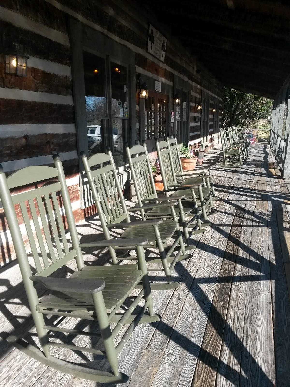 As we pulled into the parking lot, we noticed it was a cute log cabin with rocking chairs on the front porch. Typical of a good southern restaurant that begs for you come eat and sit a while.